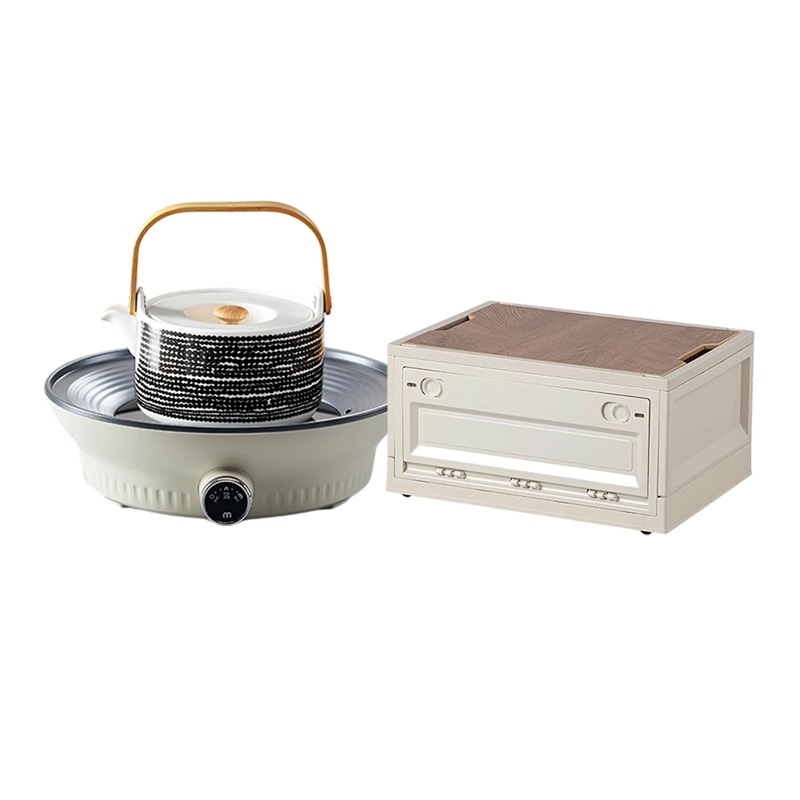 摩飞电器(Morphyrichards)多功能围炉煮茶器 0.65LMR6083白+户外折叠带提手收纳箱 木盖款(中号)