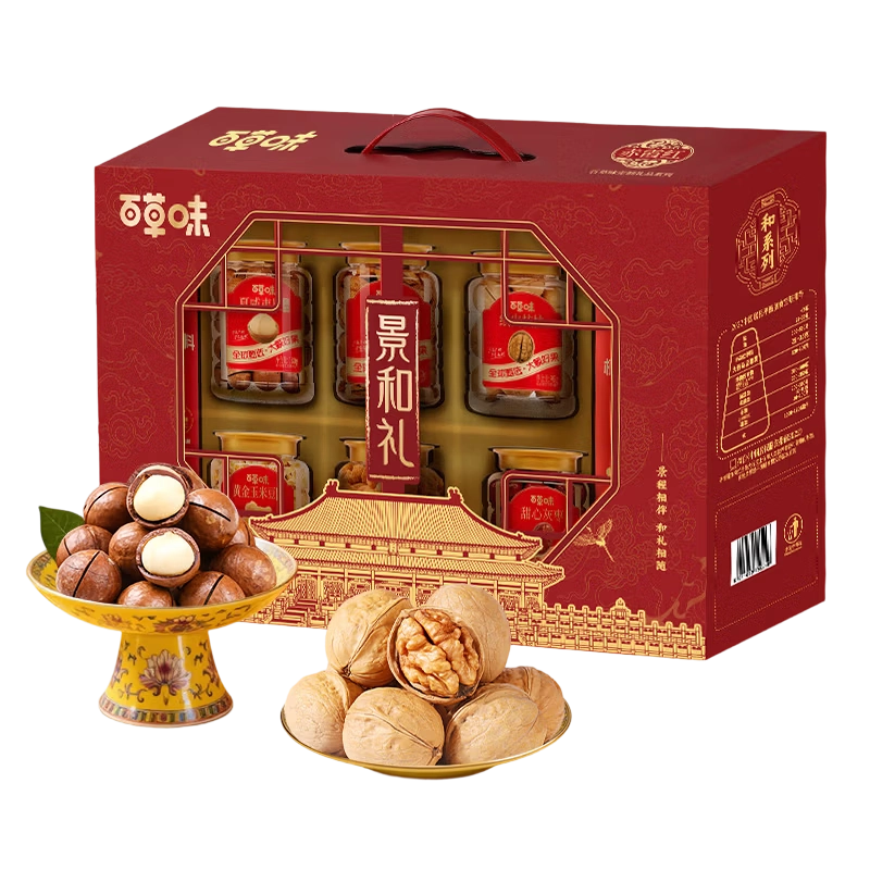 >百草味罐装坚果零食礼盒-1275g(景和礼-开窗)