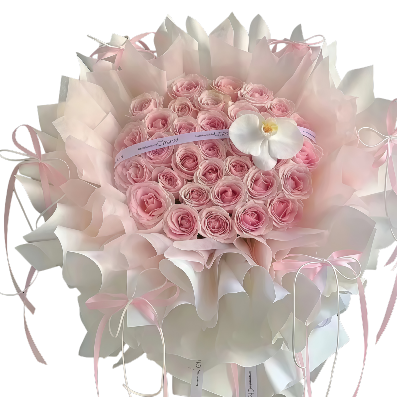 当前位置> 装饰摆件 >粉色浪漫集33朵粉雪山鲜花束(同城配送)