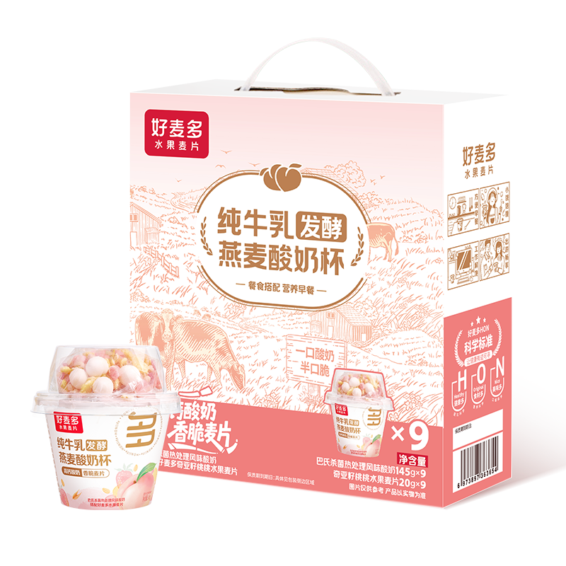 >好麦多 桃桃酸奶杯(145g+20g包)*9杯手提