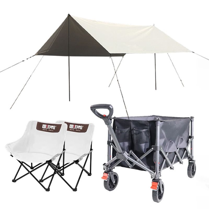 >600套餐5(趣游帮 黑耀畅行聚拢款营地车(YB010)+趣游帮牛津布涂银大天幕YB12-12M+趣游帮折叠加大号月亮椅 (双层牛津布+珍珠棉)Y38*2把)