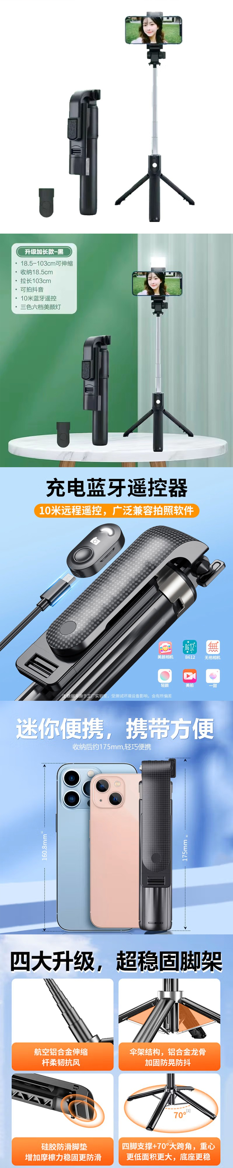 当前位置> 自拍杆 >领臣 三脚款补光灯自拍杆1米 Q9