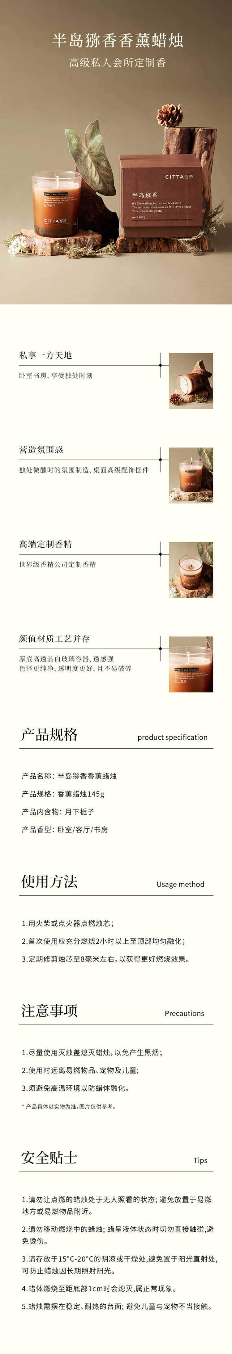 西苔半岛猕香香薰蜡烛