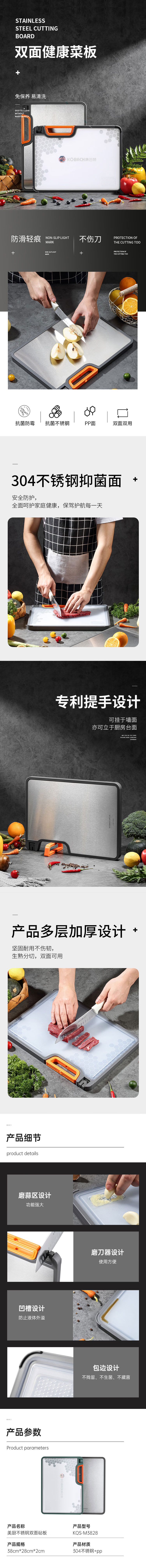 当前位置> 砧板 >康巴赫美厨不锈钢双面砧板KQS-M3828