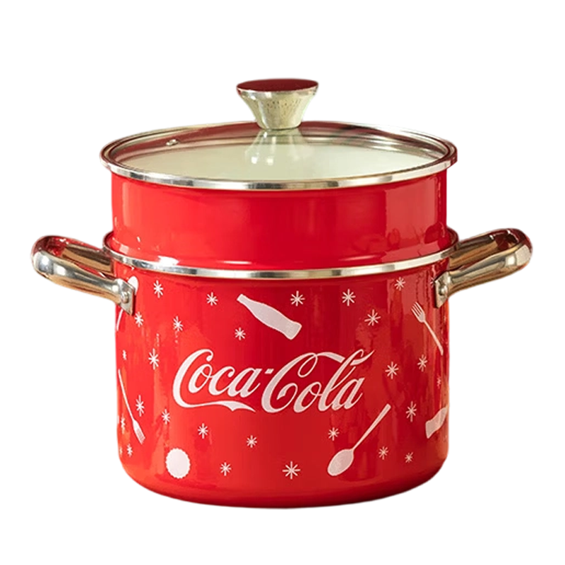 >可口可乐炫彩珐琅汤蒸锅22cm铸铁锅电磁炉通用手提礼盒装C-FL23H