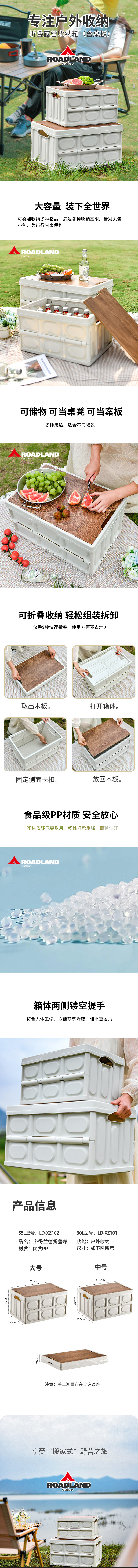 洛得兰德 户外折叠带提手收纳箱 木盖款(中号)