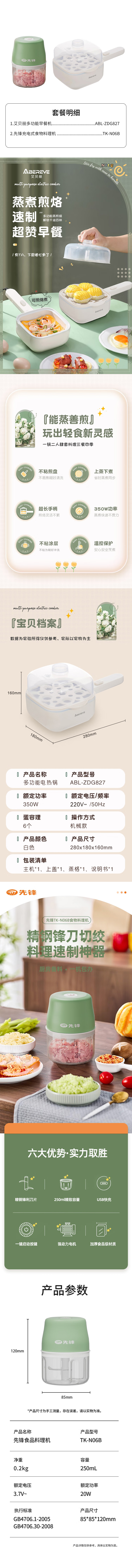 套餐100B(艾贝丽多功能早餐机ABL-ZDG827+先锋充电式食物料理机TK-N06B)