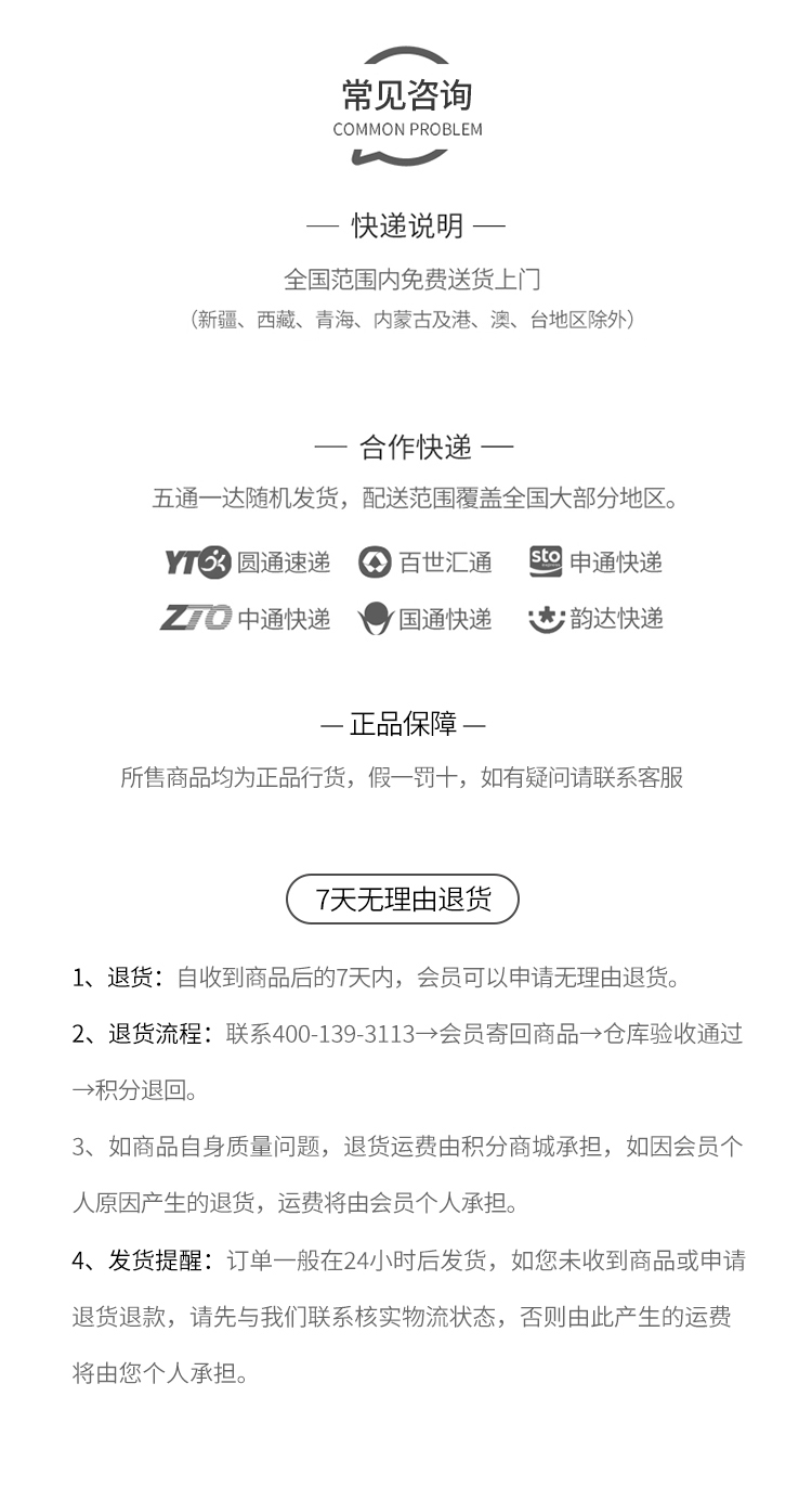 ● 如您的商品在运输过程中出现问题,请与我们的客服联系