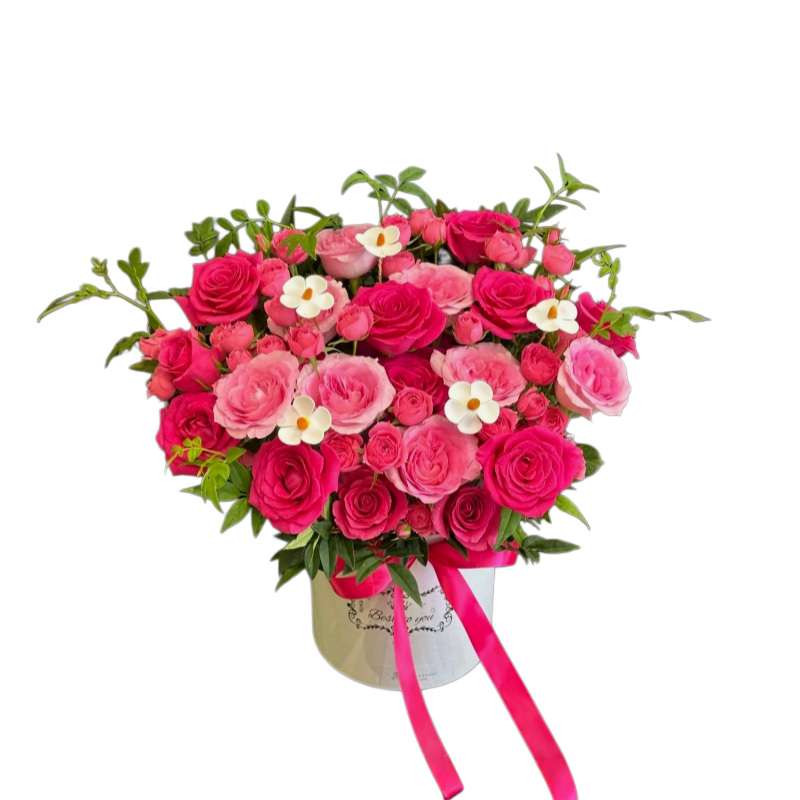 少女玫限定12朵弗洛伊德+9朵洛神+苏菲宝贝+九星叶+干花紫罗兰鲜花束抱抱桶(同城配送)