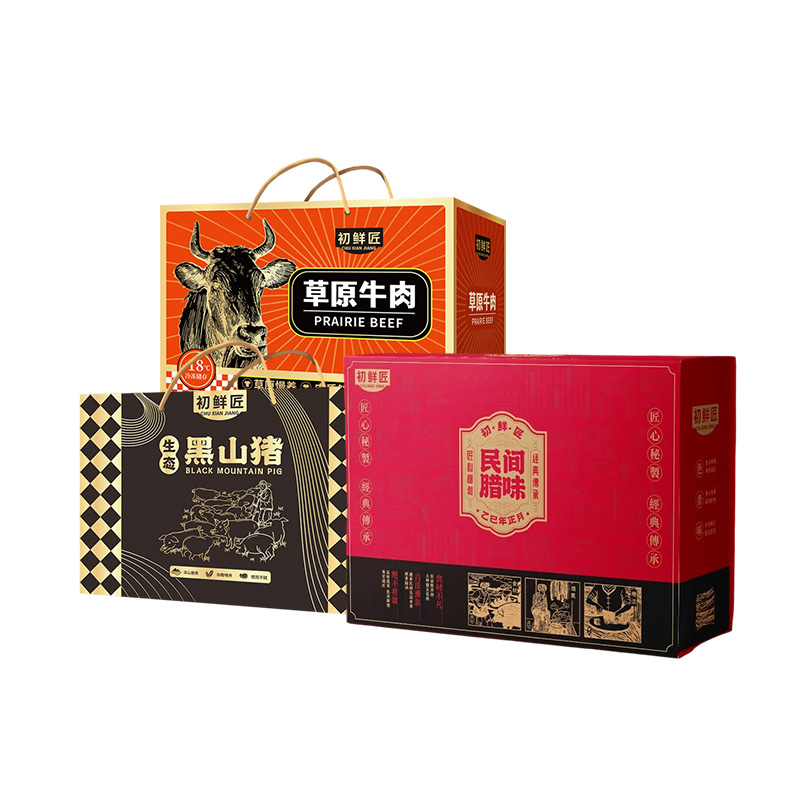 >500套餐三(初鲜匠猪肉套餐(黑猪肉398型)+初鲜匠牛肉套餐(牛肉398型 )+初鲜匠腊味198型1550g)
