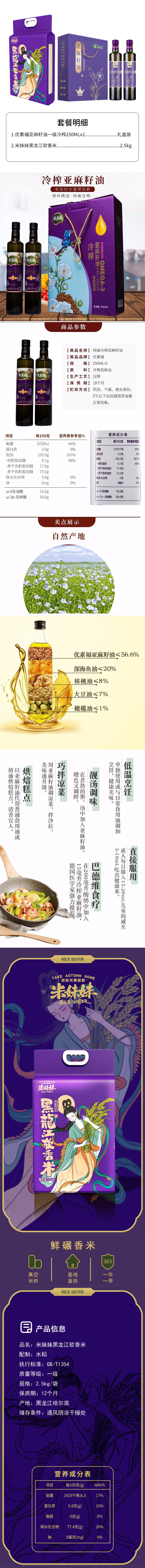 >套餐100D(优素福亚麻籽油一级冷榨250MLX2礼盒装+米妹妹黑龙江软香米2.5kg)