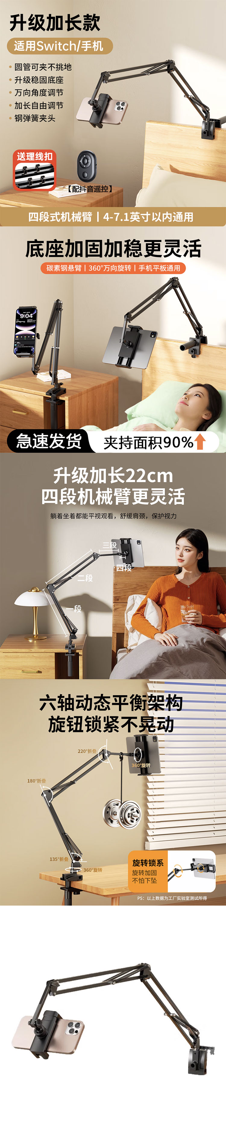 >领臣 床头懒人支架圆弧5孔-手机夹 LC-CT-1