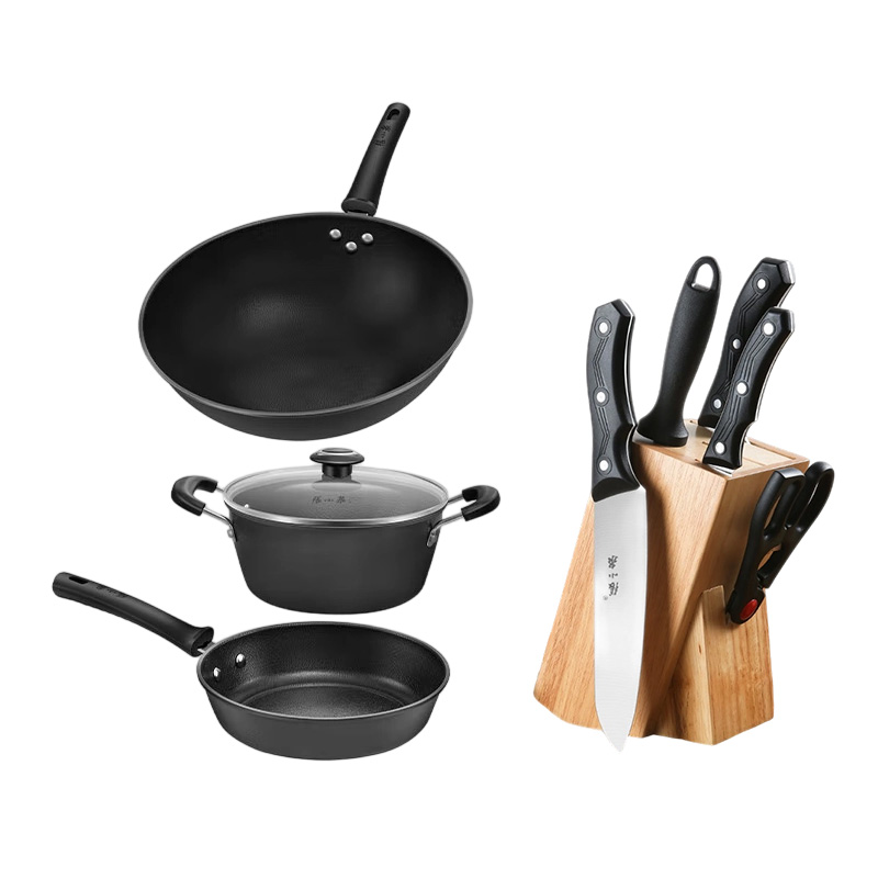 张小泉精铁雪波纹锅具三件套C35423000+张小泉山水•星耀系列刀具六件套D40490100