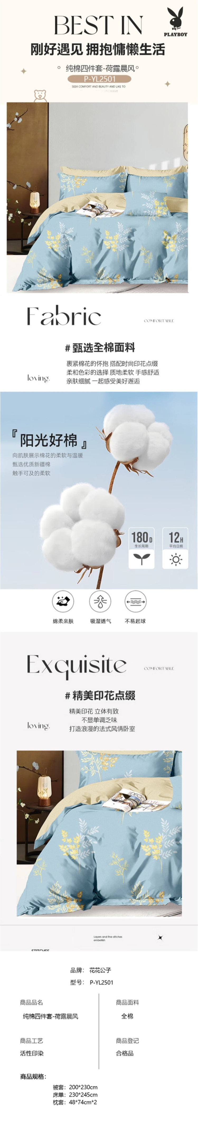 花花公子 纯棉四件套-荷露晨风P-YL2501